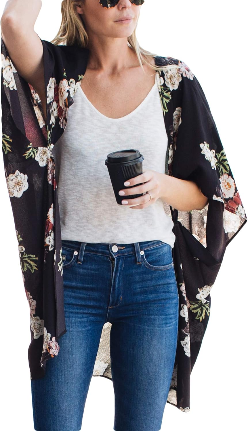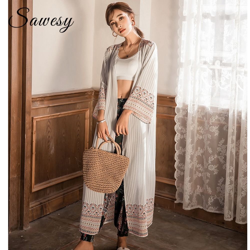 Womens Vintage Floral Loose Shawl Long Kimono Cardigan Boho Jacket Coa Express Monde