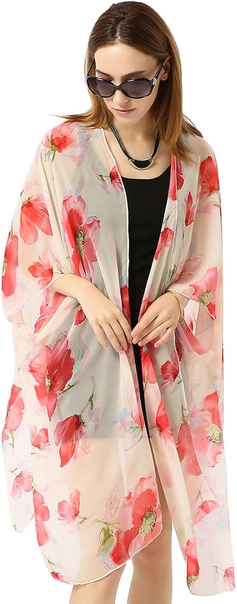 Gerinly Poppy Floral Kimonos For Women Chiffon Kimono Cardigan Flower Kaftan Swimsuit Cover Ups Sundress Shawl At Amazon Women S Clothing Store