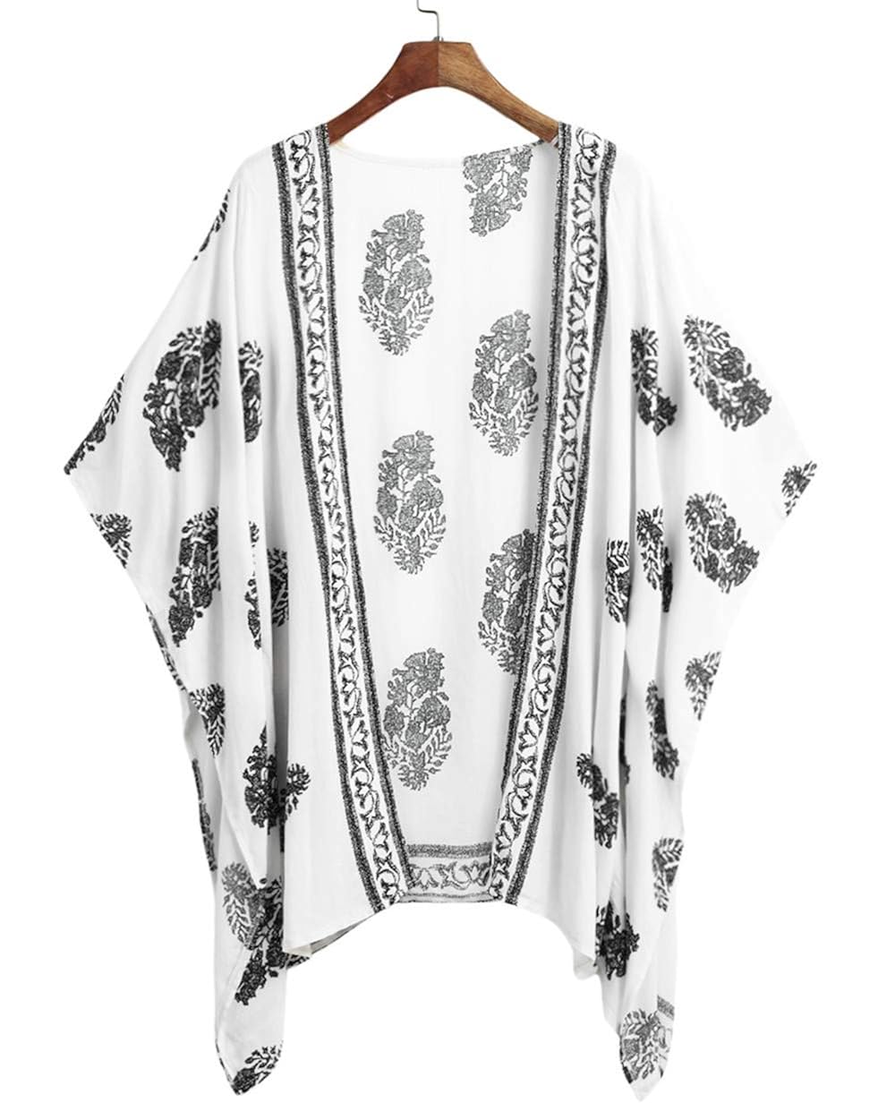 Women Summer Kimono Cardigan Bikini Cover Ups Bohemian Floral Beach Ro Three Paisley