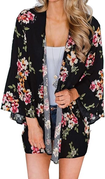 Kimono Cardigans For Women Summer Beach Floral Chiffon Long Bikini Cover Up Tops At Amazon Women S Clothing Store
