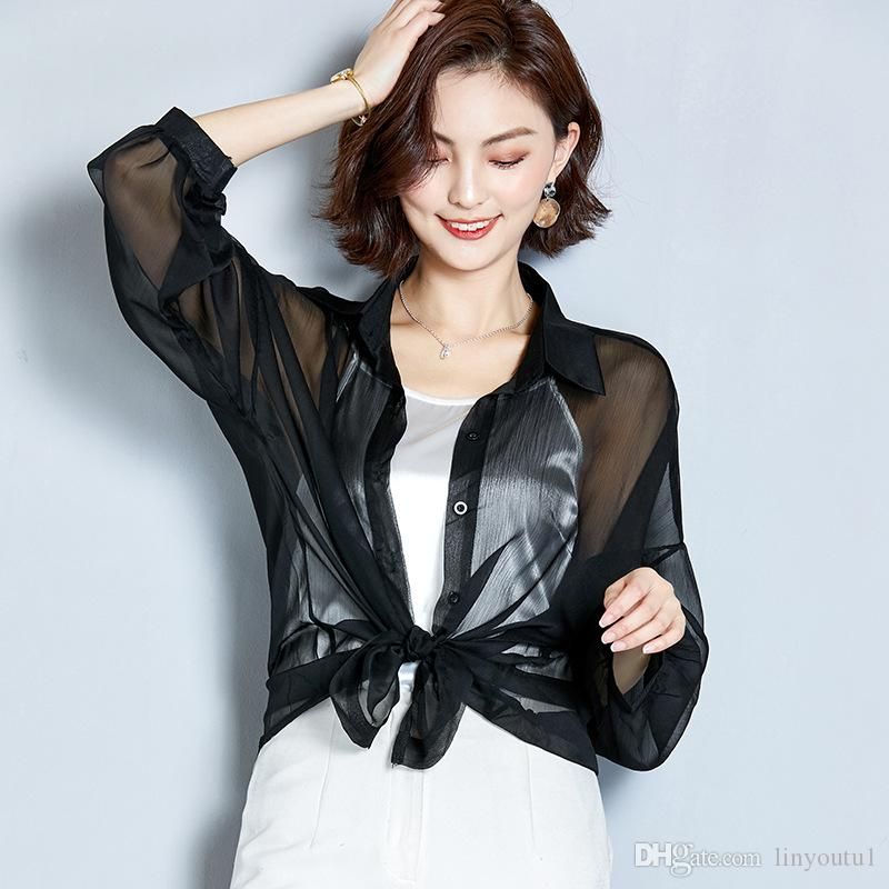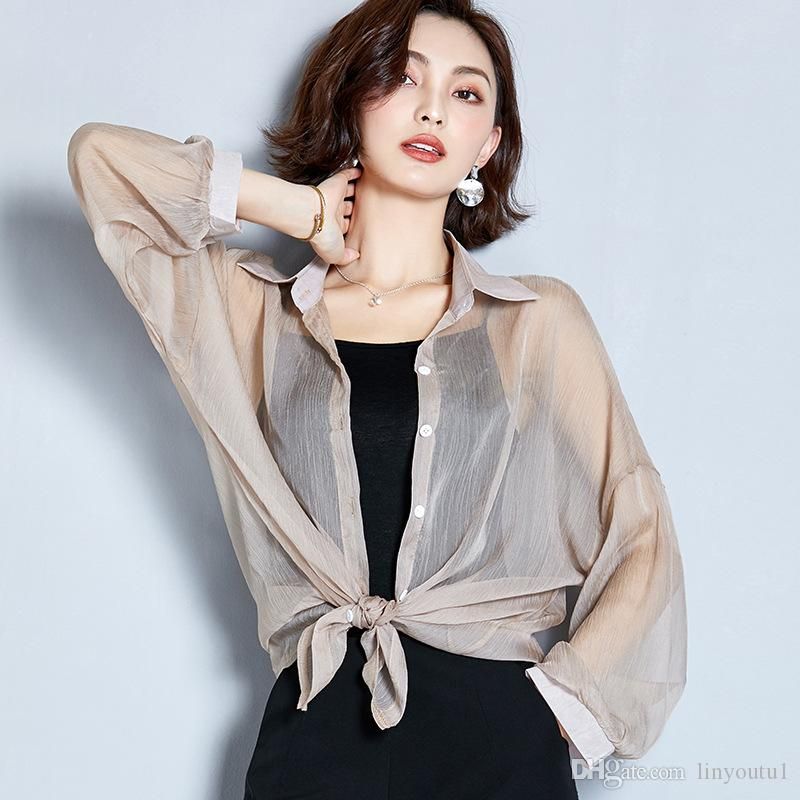 2020 2020 New Women Summer Kimono Cardigan Mesh Transparent Sun Blouse Chiffon Loose Short Plus Size Shirt Solid Beach Cover Outwear From Crazyxb 10 39 Dhgate Com