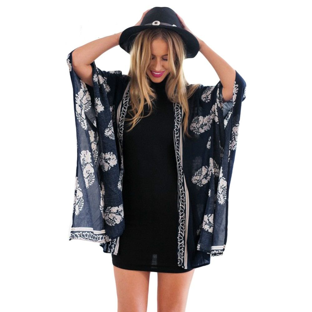 Fashion Women Summer Chiffon Blouse Beach Boho Kimono Cardigan Floral Gifts Leads