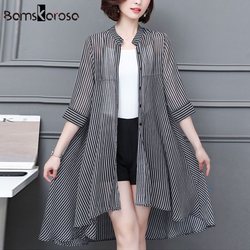 2020 Plus Size Kimono Cardigan Women Blouses Chiffon Vertical Striped Long Shirt Women Summer Mujer De Moda 2018 Casual Blusa Xxxl From Seein 15 36 Dhgate Com