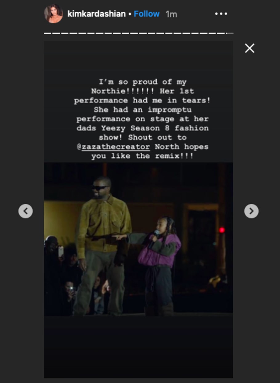 Kim Kardashian Gives Special Shout Out To Child Star Zaza After North S Rap Performance During Dad Kanye S Pfw Show